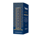 Komplet 6 filiżanek Bialetti, przeznaczonych do espresso. Bialetti Deco Glamour to seria nawiązująca do lat 20 i stylu Art Déco. Naczynia są wykonane z grubej porcelany, a każda z filiżanek ma pojemność 90ml i jest ozdobiona wzorem. Filiżanki można przechowywać w wygodny sposób jedna na drugiej na dołączonym stojaku.