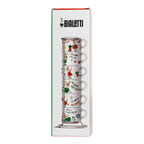 Komplet 6 filiżanek Bialetti, przeznaczonych do espresso. Naczynia są wykonane z grubej porcelany w kolorach włoskiej flagi, a każda z filiżanek jest ozdobiona logo Bialetti. Filiżanki można przechowywać w wygodny sposób jedna na drugiej na dołączonym stojaku.