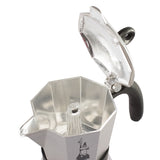Kawiarka składa się z górnego zbiornika z uszczelką, filtra oraz dolnego zbiornika. Zmielone ziarna kawy umieszczamy w filtrze, nalewamy wody do dolnego zbiornika poniżej poziomu zaworu bezpieczeństwa i łączymy ze sobą wszystkie elementy. Stawiamy kawiarkę na kuchence i czekamy parę minut. Gorąca woda przemieści się do górnego zbiornika przepływając przez zmielone ziarna. Pyszne i aromatyczne espresso jest gotowe!