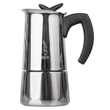Oryginalny design łączy się tu z funkcjonalnością. Sprzęt o smukłej budowie przypominającej dzbanek wykonany jest ze stali nierdzewnej oraz posiada rączkę z tworzywa sztucznego w kolorze czarnym. Stal nierdzewna wpływa na smak kawy w mniejszym stopniu niż aluminium, a ergonomiczny kształt uchwytu zapewnia wygodne nalewanie przygotowanego espresso.