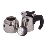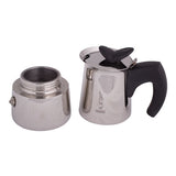 Oryginalny design łączy się tu z funkcjonalnością. Sprzęt o smukłej budowie przypominającej dzbanek wykonany jest ze stali nierdzewnej oraz posiada rączkę z tworzywa sztucznego w kolorze czarnym. Stal nierdzewna wpływa na smak kawy w mniejszym stopniu niż aluminium, a ergonomiczny kształt uchwytu zapewnia wygodne nalewanie przygotowanego espresso.