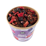 Brown House & Tea - Berry muffin to herbata sypana rooibos z owocami leśnymi. W mieszance znajdziesz dorodne kawałki naturalnych, liofilizowanych truskawek, malin, borówek amerykańskich oraz czarnego bzu. Do tego baza z czerwonokrzewu afrykańskiego, czyli rooibos. Wybrany po to, aby herbatka była dobrym wyborem dla najmłodszych oraz jako opcja do picia w wieczornych porach.