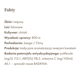 - Smak i zapach jest intensywny, jaśmin jest mocno wyczuwalny, lecz nie przysłania smaku zielonej herbaty. Owocowy, delikatnie słodki, relaksuje i odpręża.