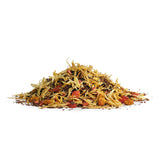 Składniki: liście czerwonokrzewu afrykańskiego (rooibos)*, suszone owoce dzikiej róży*, płatki nagietka lekarskiego*, liofilizowane owoce rokitnika zwyczajnego*, kłącze ostryżu długiego w proszku (kurkuma)*, owoc maila właściwej*, korzeń imbiru lekarskiego*, mielony kardamon malabarski*, owoc pieprzu czarnego*.