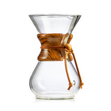 Drewniany kołnierz z rzemykiem do zaparzaczy Chemex w rozmiarze 5, 6, 8 ,10 i 13 filiżanek. Wyróżnij swojego Chemexa wyjątkowym wzorem o wyraźnych słojach drewna.