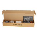 Każdy młynek zawiera dwa słoiczki na zmieloną kawę: jeden słoik z brązowego szkła oraz jeden z przezroczystego polimeru. Oba są łatwe do czyszczenia i mieszczą około 40g ziaren kawy. Młynek waży nieco ponad 600g - kompaktowy rozmiar i wytrzymała konstrukcja sprawiają, że to doskonałe narzędzie niezależnie od tego, czy jesteś w domu, czy w podróży.