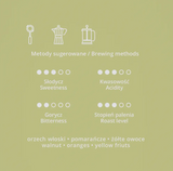 Ziarna arabiki o średnim stopniu palenia sprawdzą się doskonale do przygotowania kawy w ekspresie kolbowym, automatycznym oraz w kawiarce.