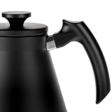 Całości dopełnia minimalistyczne wzornictwo i wykonanie z wysokiej jakości materiałów. Czajnik jest w całości ze stali nierdzewnej, z czarnym, matowym wykończeniem. Wygodna rączka została zaprojektowana tak, że można ją trzymać na dwa sposoby.