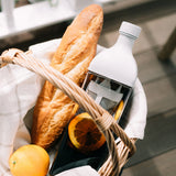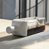 Butelka jest prosta i elegancka w formie, dzięki czemu sprawdzi się idealnie nie tylko jako przydatny gadżet dla miłośników kawy, ale też jako oryginalna ozdoba każdej kuchni. Jest wykonana z wytrzymałego tworzywa sztucznego oraz silikonu. Pojemność butelki wynosi wynosi 1 litr i jest ona wyposażona w silikonową zatyczkę. Posiada drobny filtr z tworzywa sztucznego, dzięki któremu napar jest pozbawiony drobinek ziarna, a całość jest prosta w utrzymaniu.