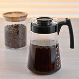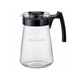 Serwer wyprodukowano w Japonii z zachowaniem najwyższych standardów. Jest wykonany ze szkła odpornego na wysokie temperatury. Szeroka rączka z tworzywa sztucznego zapewnia dobry chwyt, a wyprofilowana wylewka pozwala na precyzyjne przelewanie zawartości. Miarka na ściance sprawdzi się podczas przygotowywania gorących napojów. Przykrywka może dodatkowo służyć jako ociekacz do drippera. Dzbanek doskonale sprawdzi się jako serwer do przygotowania kawy z drippera.