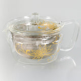 Hario Tachikichi Cha-Cha Kyusu Zen Kyo-Karakusa to szklany dzbanek ze stalowym filtrem do parzenia herbaty. Ma elegancką formę z materiałów wysokiej jakości, jest prosty w użyciu i nie wymaga dodatkowych akcesoriów aby przygotować pyszny napar. Pojemność użytkowa 450ml czyni go idealnym do przygotowania herbaty dla jednej lub dwóch osób.