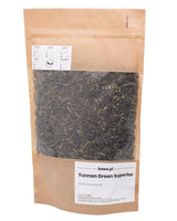 YUNNAN GREEN SUPERIOR to herbata pochodząca z prowincji Yunnan w Chinach. Ma delikatnie skręcone listki o nieco zielonkawym czy też srebrzystym kolorze.