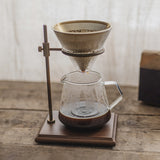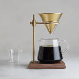 Stacja na dripper jest wykonana z mosiądzu oraz drewna i pozwala na parzenie kawy do naczyń o różnej wielkości. Wysokość, na jakiej ustawiony jest uchwyt jest regulowana.
