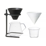 KINTO SCS-S04 to zestaw akcesoriów, dzięki którym w efektowny i prosty sposób zaparzysz doskonałą kawę w domowych warunkach. Zestaw zawiera ceramiczny dripper w rozmiarze 4 filiżanek, stację na dripper, serwer o pojemności 700ml, naczynie służące za miarkę lub podstawkę pod dripper oraz opakowanie papierowych filtrów.