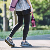 Elastyczny silikonowy pasek umożliwia łatwe przenoszenie butelki. Trzymając pasek wokół palca podczas picia, nie trzeba martwić się o upuszczenie pokrywki. Górna pokrywka i środkowa zakrętka mogą być łatwo zdejmowane do mycia. Zaokrąglone dolne rogi zapobiegają również gromadzeniu się osadów wewnątrz. Duży otwór ułatwia wkładanie napojów i kostek lodu.