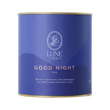 Ziołowa herbata Good Night od Lune Tea. Wśród herbacianych gwiazd, ta błyszczy szczególnie mocno. Good Night to ziołowy napar z dodatkiem adaptogenów, poprawiający jakość snu oraz relaksujący ciało i umysł. Idealny rytuał dla zapracowanych i zestresowanych, których wieczory okrywa kołderka zmartwień i stresu. Good Night wycisza organizm i uspokaja myśli – w pełni naturalnie.