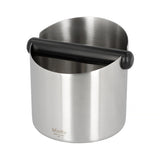 Praktyczny odbijak do fusów Motta. Sprawdzi się zarówno w profesjonalnym użyciu w kawiarni, jak i w domowym kawowym kąciku podczas przygotowywania espresso. Jest wytrzymały dzięki konstrukcji ze stali nierdzewnej, a gumowa belka niweluje poziom hałasu generowanego przez uderzenie portafiltra. Guma na spodzie zapewnia stabilizację podczas pracy.