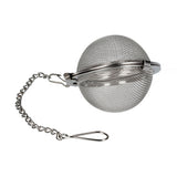 Kulisty zaparzacz na łańcuszku do ziół i herbaty. Zapobiega przedostaniu się fusów do naparu. Średnica 4,5 cm - stal nierdzewna.