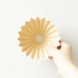 Elegancki, w fantastycznym beżowym kolorze Dripper ORIGAMI jest inspirowany duchem radosnego, kolorowego, kreatywnego, ale delikatnego rękodzieła kochanego od wieków - czyli sztuki składania papieru. Opracowany przez zespół projektantów i baristów gwarantuje doskonały przepływ wody, a co za tym idzie niepowtarzalny smak kawy, dzięki 20 wyżłobieniom. Piękny, wykonany z z prestiżowej japońskiej porcelany Mino-yaki, pasujący do wielu rodzajów filtrów powszechnie dostępnych na rynku.