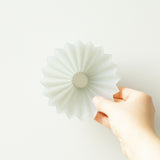 Parzenie kawy w dripperze ORIGAMI Air jest niezwykle proste. Wystarczy umieścić dripper z podstawką* na serwerze lub kubku, włożyć do niego papierowy filtr i wsypać zmieloną kawę, którą następnie kilkukrotnie zalewamy gorącą wodą. Metoda jest prosta, jednak pozwala na wiele eksperymentów i dostosowywanie poszczególnych parametrów parzenia. Przygotowana w ten sposób kawa jest pełna smaku i pozbawiona fusów. Dripper jest kompatybilny z filtrami stożkowymi oraz karbowanymi w rozmiarze S (1-2 filiżanki).