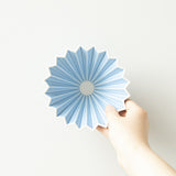 Drippery ORIGAMI zostały zaprojektowane i wykonane w Japonii z wysokiej jakości porcelany. Ich nazwa nawiązuje do formy drippera, który przypomina złożone origami. Kształt stożka, dwadzieścia równo rozmieszczonych żłobień i dolny otwór o średnicy 2,5cm zapewniają dobry przepływ wody oraz odpowiednią ekstrakcję kawy. Ze względu na proces produkcji porcelany, na niektórych naczyniach mogą występować pewne nierówności czy niewielkie różnice w tonie koloru - nie jest to wadą i nie wpływa w żaden sposób na użytkowanie naczynia.