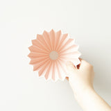 Drippery ORIGAMI zostały zaprojektowane i wykonane w Japonii z wysokiej jakości porcelany. Ich nazwa nawiązuje do formy drippera, który przypomina złożone origami. Kształt stożka, dwadzieścia równo rozmieszczonych żłobień i dolny otwór o średnicy 2,5cm zapewniają dobry przepływ wody oraz odpowiednią ekstrakcję kawy. Ze względu na proces produkcji porcelany, na niektórych naczyniach mogą występować pewne nierówności czy niewielkie różnice w tonie koloru - nie jest to wadą i nie wpływa w żaden sposób na użytkowanie naczynia.