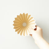 Parzenie kawy w dripperze ORIGAMI jest niezwykle proste. Wystarczy umieścić dripper z podstawką* na serwerze lub kubku, włożyć do niego papierowy filtr i wsypać zmieloną kawę, którą następnie kilkukrotnie zalewamy gorącą wodą. Metoda jest prosta, jednak pozwala na wiele eksperymentów i dostosowywanie poszczególnych parametrów parzenia. Przygotowana w ten sposób kawa jest pełna smaku i pozbawiona fusów. Dripper jest kompatybilny z filtrami stożkowymi oraz karbowanymi w rozmiarze S (1-2 filiżanki).