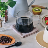 Ze względu na pojemność, sprawdzi się szczególnie z dripperem w rozmiarze S (1-2 filiżanki). Odpowiedni pod względem średnicy również do AeroPressa (zaleca się jednak ostrożność przy wyciskaniu AeroPressa na szklanych naczyniach).