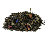 Składniki: Liście zielonej herbaty mao feng, skórka pomarańczowa, aromat, niebieskie chabry, płatki róż, płatki nagietka