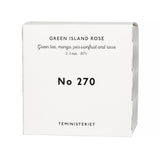 270 Green Island Rose jest mieszanką naturalnej zielonej herbaty, papai, mango i pączków róż. Owoce dodają delikatnej słodyczy, kwiaty nadają cudownego aromatu, a zielona herbata jest pełna antyoksydantów.