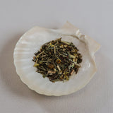 Składniki: Trawa cytrynowa, korzeń lukrecji, jabłko, liście mięty pieprzowej, rumianek, koper włoski, liście truskawek, kwiaty lipy, kwiaty nagietka.
